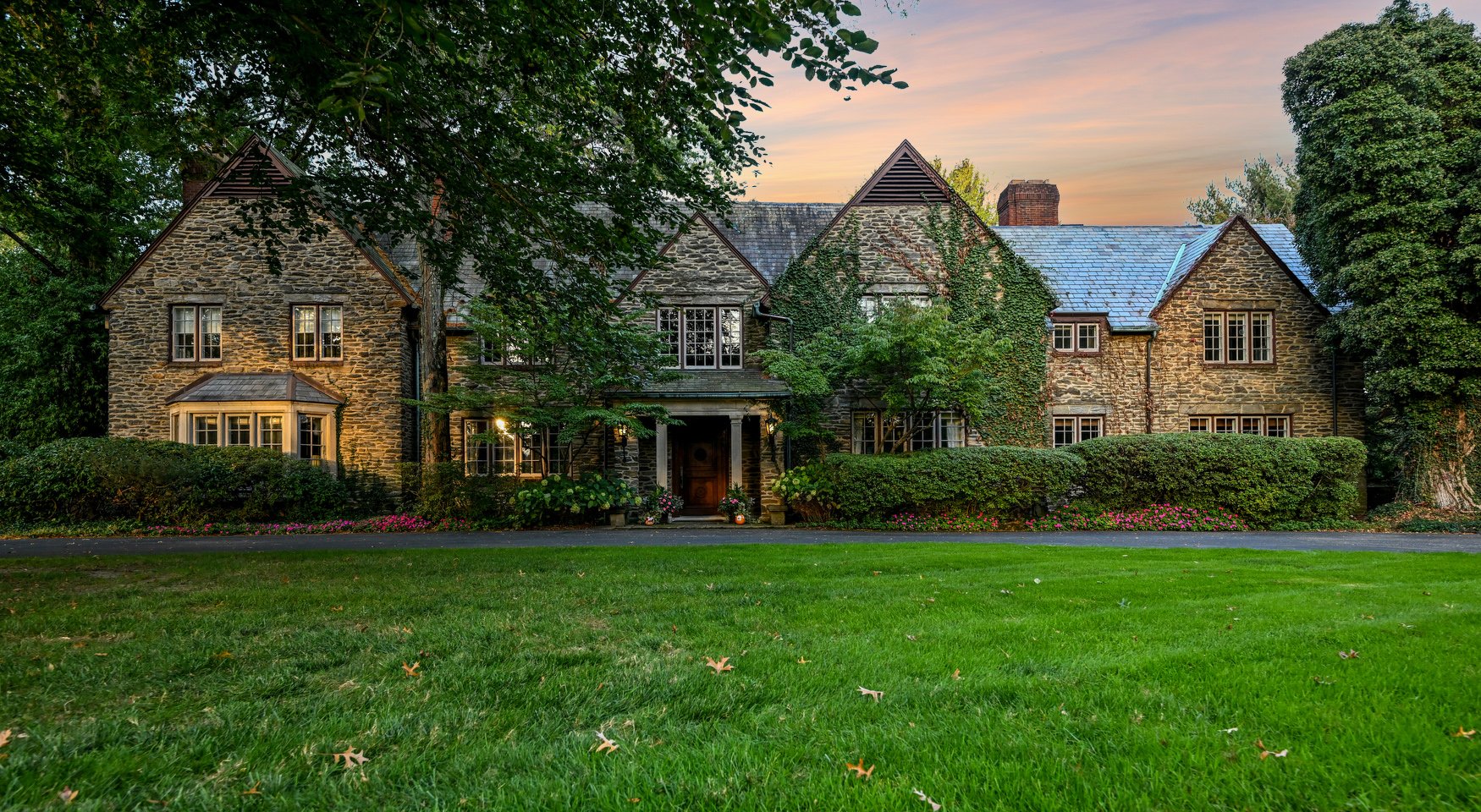 Discover this Fabulous Tudor Revival Home with Stone Exterior set on a sprawling 2 ACRE Private Gated Estate, 8,000+ SF of luxurious living space and a 5-car garage. This impressive property features extensive gardens and a charming terraces, showcasing the finest craftsmanship and unmatched character in its construction and materials.